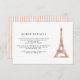 De här parisiska gästkorten stil bröllop har en bild av Eiffel Torn på ett vitt underlag från ro guld. Du kan använda korten så att de innehåller information om din bröllopsmottagning, köranvisningar, logi och allt annat som du behöver dina gäster för att veta! Kortets baksida har matchande faux ro guld rand, men du kan ta bort dessa och lämna baksidan tom om du vill genom att anpassa objektet. Kontakta mig om du behöver hjälp.
