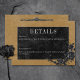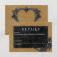 Transport dina gäster till en värld av mörk, elegans med vårt vintage gothic bröllop-informationskort. Bakgrunden åldras Victorian guld anger scenen för en slående kontrast, eftersom fet vit text kommer från komplicerade svarta textrutor. I höjdpunkten på inbjudan fångas det centrala i mystik och romantik av en tredimensionell gothisk gräns med en regal svart korv. Baksidan är försedd med två sammanflätade vindruvor av svart ro som subtilt bildar ett hjärta runt två omfamnande ravens, vilket tillför en aning dramatisk allure. Släpp magin och ange tonen för en oförglömlig bröllopsdag. Kortet är en del av Gothic Black Raven & Black Ro Guld Bröllop Suite som helt enkelt skapats av Farmhouse Press.