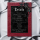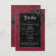 Transport dina gäster till en värld av mörk, elegans med vårt vintage gothic bröllop-kort. Den djupa, åldras-burgudin vin-bakgrunden anger scenen för en slående kontrast, eftersom fetstil, vit text kommer från komplicerade svarta textrutor. Tredimensionellt gotskt inslag adorn designen, som fångar kärnan av mysteriet och romantik. Släpp magin och ange tonen för en oförglömlig bröllopsdag. Skapat av Farmhouse Press.