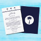 Ange tonen för ditt firande vid kusten med det här personlig bröllop-detaljkortet för kusten, perfekt för ett badbröllop eller ett tema för handflatan träd bröllop. Det här snyggten har en chic med tre eleganters marinblått träd i handflatan, med en nyans med blå rand som är riktad mot en skarp vit bakgrund. På motsatt sida visas en enda marin handflatan träd i en vit cirkel mot en rik marin bakgrund, med ett fet, tropiskt tryck. Med elegant-typografi och ett blomstrande calligraphy-skriptteckensnitt är detta kort idealiskt för att dela information om bröllop, t.ex. bröllop, orientering eller färdväg. Ett sofistikerat val för vilket havsininspirerat eller tropiskt firande som helst.