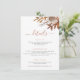 Moderna botaniska blommor, lövträd, pampasgräs och torkat löv skapar en inbjudan till chic om höstfallsbröllop med insättningskort med ett handskriftsskript för trendig och en jordisk terracotta beige färg palett.