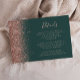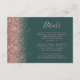 Det lämnar kanten i eleganten har ett kort för modern detaljrikedom i bröllop som har utformats för ro faux glitter i guld. Anpassadet kombinerar handskrift, rityta och kursivt typsnitt på blek ro färgad med mörk grönt bakgrund. Den omvända sidan har en passande mörk grönt utformning och ro guld glitter.