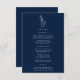Lägg till alla speciella detaljer på det här vackra informationskortet med royalets blå bakgrund med vit text med en ritad bröllop-parsdesign överst för att behålla den kohesiva inställningen.