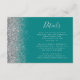 Den lämnat kant i denna elegant har ett modernt-kort för detaljdetaljer i djurutrymmet i bröllop som har silver faux glitter. Med anpassadet kombineras handskrift av blek grått, tryckplåt och kursivt typsnitt på en helblå bakgrund. Den omvända sidan har en passande teal- och silver glitter-design.