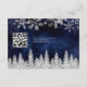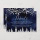Det är dags att fira ert vintertema bröllop med denna lyxa silver glitter-gnistor och skogsdetaljkort för silver glitter-gräs-träd på en snöflingor marin blå vattenfärgsbakgrund, med en modern elegant-typsnitt.