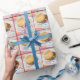 Uppifrån och ned på födelsedagskupaka presentpapper