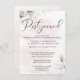 Försenat bröllopsutskick - Om du har skickat inbjudningarna och oväntat har mått pausa datumet för ditt stora evenemang, skicka dessa till dina gäster. Ljust rosa pastell vattenfärg tvätt framhäver ömtåliga boho-eukalyptusblad accentuerade med bara några rosa rosor - ett vackert boho skogstema är perfekt för alla typer av firande - i kombination med en modern typsnitt och handskriven kalligrafi sätter tonen för ett elegant lantligt evenemang. Elegant rustik design av WhimsicalArtwork™ Detta är en del av en komplett brölloppspresentationssvit med matchande bröllop, baby shower och andra evenemangspresentationsmaterial.