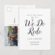 Denna roliga moderna svarta och vita "Save our date, we do redo"-kort har ett elegant skrivsätt ovanför dina detaljer i chic typografi. Baksidan har ditt speciella foto och ytterligare detaljer, inklusive din hemsida, med din returadress och plats för din mottagares adress. Designad av Thisisnotme©