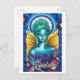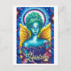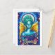 Perfekt med vykort skapar hälsning på ett sätt! Vykort-design av ett levande blått och grönt med gyllene vingar och glansande gloria gör detta till ett underbart kort för fantasinentusiaster. Vykort är tomt på baksidan, med liten Zazzle-logotyp och konstnärens logotyp i grund.