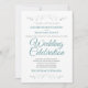 Den här vackra bröllopsinbjudan har en enkel och klassisk utformning av teal eller turkos och grått-text på vit bakgrund med silver faux foil blommigt gräns. Chic- och elegant-design som är både formell och enkel, med vackra skript.