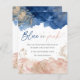 En inbjudan från Baby Gender Reveal Party till elegant blue och rosa vattencolor. Typografiktexten är blå eller rosa? På vit bakgrund dekoreras blått och rosa med guld stänk och damm. Anpassa genom att lägga till information om din fullt längst fram och bakåt.