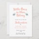 En söt typografisk inbjudan till din lilla flicka med en linje från det populära ljudet Jesus Kärlek Me. Uttrycket "De små till honom hör" är skrivet i ett korallpenseltecken som är täckt av två grått elefanter.
