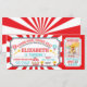 Kom ett, kom alla! Inbjudan alla till den underbarare födelsedagsfesten under den stora toppen med vår personlig för inbjudan till karneval i biljett med ditt eget barns fotomallar. Den här cirkuskarnivalen biljett-födelsedagsinbjudan har röd cirkus tält-bakgrund med röd och teal karusell och luftballonger på ett modernt stil erkänner en biljett-designad personlig med ditt eget foto.