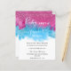 En skarp och färglös inbjudan till Baby Gender Reveal Party. På vit bakgrund faller blått och rosa rök och glitter konetti långsamt ned runt den typografiktext som lyder Baby Ditt efternamn. Anpassa genom att lägga till information om din fullt längst fram och bakåt.