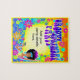 Roligt och färgfull pusselinbjudan på 8 x 10 tum med texten "Groovy Födelsedagsfest" tryckt i roligt 60s-stil på en orange, gult, grönt och blå bakgrund med en variant av 70s-bilder. Det nedre hörnet i högerna har en kvinna med stor afro och farliga örhängen som ger ett martinistiskt glas. Anpassa med information om party. Se hela Disco 70s Puzzle-samlingen i AKTIVITETER | Pussel-sektionen.