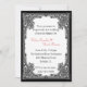 Formellt bröllop-repetitionsmiddagsinbjudan, klar i vitt och svart. En vit textbakgrund, med ett svart ornat Gothic stil baroque ram och svart gräns, markerar denna underbarare tittar inbjudan. Parets namn i röd manustext är bra för att dra bort öga från ramen finare. Anpassa texten med teckensnittet stil, färg och storlekare.
