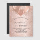 En magnet-inbjudan för elegant 21:a födelsedag (eller någon annan ålder). En ro-guld tittar metallisk bakgrund. Dekorerad med ro guld, rosa faux glitter, färgdroppstift och ballonger. Anpassa och lägg till uppgifter om namn, ålder 21 och party. Namn är skrivet med ett handskript i stil. Både en inbjudan och Spara datumpåminnelsen till dina gäster!