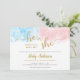 I den här genderna i vågrät visas en kalligrafitext för guld faux glitter på en rosa- och blå vattenfärgsbakgrund. Om du anpassar den här roligten och bjuder in din gender på ett modernt sätt visas party-information.