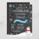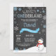 Vinter Onederland 1:a födelsedagsinbjudan. Snögubbe. Blå och vit snöflinga. Första födelsedagen. 1:a Bday Inbjudan. Bakgrund för kalkbord. Black and White. Om du vill göra ytterligare anpassningar klickar du på knappen "Anpassa" och användor verktyg som är utformat för att ändra mallen.