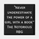 "Underskatta aldrig styrkan hos en flicka med bok." - The nosorous RBG, Supreme Court Justice Ruth Bader Ginsburg, citattecken magnet