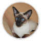 Förtjusande försegla pekar den Siamese katten med henne nätt blåttögon på uppmärksamhetstunder som leker på en krämig beige kastfilt på soffan.