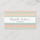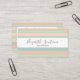 Behålla det rent och professionell med den här inaktiverade utformningen av affärskortet för rand. Med en subtil och elegant färg-palett med mjuka gröntar och persikor, är den strimlade layouten ge ett modernt men underskattat intryck. På framsidan finns ett anpassade vitt rand för ditt namn och din titel, medan spegeln på baksidan har en ren design med utrymme för din kontaktinformation. Perfekt för hälsa professioneller, konsulter, terapeuter, konstruktörer och alla som värderar ett minimalistiskt och naturligt estetiskt tänkande.
