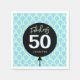 Perfektens napkin i 50:e födelsedagsfesten. Blåballonger täcker napkinbakgrunden med en stor svart ballong i mitten som visar "50" i block brev. Anpassa namn eller året och din femtionde födelsedagsfest kommer att vara klar.