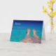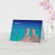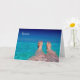 Framsidan av hälsningskortet i grattisarna i pension har ett foto av ett par maniska fötter som sticker ut från ett blått hav under ett levande blå himmel. Texten i ljusblå överst lämnat står helt enkelt "slappna av". Insidan säger "Du förtjänade det" och sen "Grattisar"! All text, både fram och in, är lätt att anpassa, så du kan göra det spelar ingen roll att du vill.
