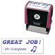 Den här roligten gummiformgivningen i frimärke innehåller det uppmuntrande budskapet "UNDERBART JOBB!" och en skräddarsydd lärares namn. Den har också en dekorativ musikalisk lapp. Det skulle kunna användas av en lärare, lärare eller en lärare när de markerar uppdrag för att erkänna att student har gjort bra ifrån sig.