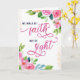 Uppmuntrar någon att hålla tron med denna unika typografidesign med detta budskap i rosa akvarellbokstäver: "Vi vandrar genom tro, inte genom syn." Designen är accentuerad med akvarellblommor och guldfyrverkeriprylar. Insidan har bibelversen, "For vi vandrar genom tro, inte genom syn. 2 Korinthierbrevet 5:7" (Kungs Jakob Bibeln) men kan anpassas för att passa dina personliga behov.