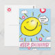 Om du är lärare eller professionell för barnomsorg och är tittar för söta, ljusa och uppmuntrande vykort att ge till yngre studenter, kan du uppskatta det här Cute Smiling Sunshine Behålla Shining Encouragement-vykortet från Zazzle! Varje vykort finns i pappra typer av projektionsytor eller halvblank och säljs med eller utan kuvert med kortet eller i mängder om 2-2000. Hjärtklämd på baksidan för en extra liten bit av hjärtlig Perfekt i äventyr för skola, klassrum, hem och mycket annat!