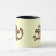 En rolig apadesign presenteras på en hög av muggar för att dig ska välja från.