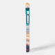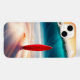 Ogenomtränglig orange surfboard på en strand med stor havsvåg.