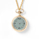 Denna kvinnoklocka har en geometrisk utformning av en typ av platta ovaler som upprepar sig över mönstret i brunt på fält i blek blå.