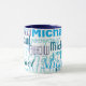 En typografisk coola i blå nyanser som upprepar namn i olika typsnitt stilar och blåaktiga toner. Lägg till ditt namn och gör det till ditt! Personlig mugg är underbart för vardaglig använda och ger en roligt till vänner, familj eller medarbetare. Skriv bara i namn och skapa ett eget namn mugg som är unikt, användbart och helt enkelt du. Perfekt till morgonkaffe, te eller kontorsbord!