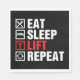 För gymmet finns en design som säger att man ska äta sömn igen i hiss. Den här designen ser ut att vara effektiv på dessa Pappra servetter