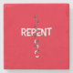 Nedåtriktade fotavtryck kor och ord REPENT vänder sig sedan uppåt och skapar ett kristet kor.