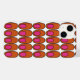 Det här telefonärendet har en modern utformning i mitten av århundradet av upprepade ovaler av orange med rosa ovaler inuti.