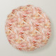 Upprepande oregelbundna cirklar som bildar något som liknar blomma och fjäril i någon brunaktig orange och beige på vitt.