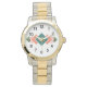 Den här klockan har en Bauhaus-design på sju överlappande diamanter som löper lodrätt längs objektet i färg av blått, rosa och grönt.