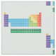 Periodiskt bordtyg har en upprepad design att presentera det periodiska bord av inslagen, med varje markerad inslaggrupp i regnbågefärger.