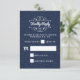 De här OSA kort är perfekter för alla par som planerar ett romantiskt modernt bröllop. Utformningen har enkla stjärnor med mycket elegant på en chic, marin blå bakgrund med vit trendig. Den här utformningen kan vara personlig till kostym för din speciella händelse och kommer att vara perfektens svarskort för alla moderna och trendig som kallas party, inklusive: möhippor, förlovningar, möhippor, födelsedagsfester och mycket, mycket mer.