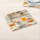 Den här underlägg har en frukost på morgonen. Bilden innehåller nötter, kaffe och orange på en våffelduk. Köket är bakgrunden. Bild är en digital fotokonst stil. Underlägg är en fyrkantig papper massa som underlägg. Det finns sex underlägg i underlägg uppsättning.