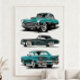 Lägg till en liten nostalgi i ditt space med den här fantastiska bilden med en trio vintage bilar i färg. Med sin djärva men tidlösa utformning fångar den här teckningen perfekt charmen av klassiska bilar och vintage-estetik, och skapar den som en utmärkt biet för alla bilentusiaster eller reflektorer älskare.