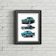 Fyll på ditt utrymme med nostalgi genom den här vackra grafiken som visar tre vintage bilar i reflexer. Dess slående men klassiska utformning förkroppsligar på ett vackert sätt alla klassiska bilar och vintage stilar, skapar den som en must-have för alla bilentusiaster eller älskare i reflektorer.