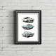 Lägg till en liten nostalgi i ditt space med den här fantastiska bilden med en trio vintage bilar i färg. Med sin djärva men tidlösa utformning fångar den här teckningen perfekt charmen av klassiska bilar och vintage-estetik, och skapar den som en utmärkt biet för alla bilentusiaster eller reflektorer älskare.