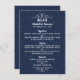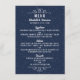 De här menykorten är perfekt för alla par som planerar ett romantiskt modernt bröllop. Utformningen har enkla stjärnor med mycket elegant på en chic, marin blå bakgrund med vit trendig. Den här designen kan vara personlig till kostym för din speciella händelse och kommer att vara perfektens middagsmeny för alla moderna och trendig som kallas party, inklusive: möhippor, förlovningar, möhippor, födelsedagsfester och mycket, mycket mer.