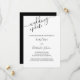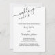 Elegant och kort för enkel uppdatering av Bröllop för att meddela gästerna om uppskjutandet av bröllop. Utformningen är i svartvitt med handskrivna manusskrivtypografi för namn i bruden och trimmen och ord "bröllop uppdatering". Exempelformuleringen lyder: "På grund av den senaste tidens händelser har bröllop i [ditt namn] skjutits upp. Vi kommer att informera er så fort vi fastställer ett nytt datum. Det var ett svårt beslut och vi tackar er för er förståelse. Mallen är ett redo som du kan använda för att lägga till namn och redigera så mycket text som du vill.
