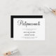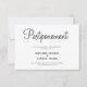 Modern svartvitt bröllop-meddelandekort för uppskjutning med en enkel design med titeln i skript. En grundläggande och tydlig design som fortfarande visas som elegant. Dessa minimalistiska kungörelsekort är ett underbart sätt att informera gästerna om att bröllop har skjutits upp.