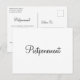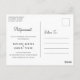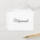 Modern vykort för uppskjutningsmeddelande i svartvitt bröllop med en enkel design med titeln i skript. På baksidan finns information och returadress för enkel utskick. En grundläggande och tydlig design som fortfarande visas som elegant. Dessa minimalistiska vykort är ett underbart sätt att informera gästerna om att bröllop har skjutits upp.